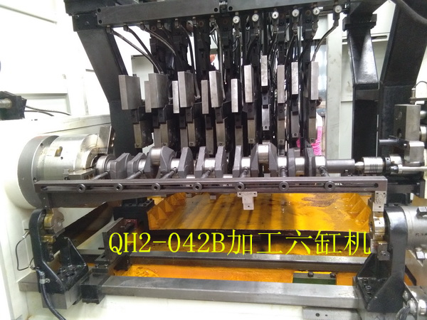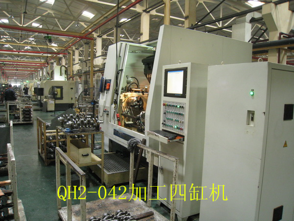 QH2-042變力曲軸圓角滾壓及滾壓校直機(jī)床(發(fā)明專利號1823602)是與武漢理工大學(xué)共同開發(fā)的一款高檔數(shù)控設(shè)備。該機(jī)床為九鉗直立布置,可以一次性對所有四缸曲軸完成的變力滾壓,自動檢測和自動滾壓校直的加工。該機(jī)床帶有測力器,自動檢測工件零位,自動檢測記錄工件加工情況和滾輪破碎自動檢測等功能,可以完全保證工件的加工質(zhì)量。具備與著名德國的圓角滾壓設(shè)備制造商Hegenscheidt公司產(chǎn)品同樣的功能,具有極高的性價比。