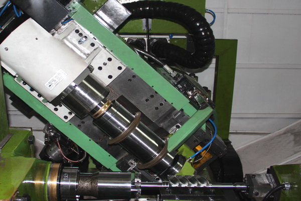 機床砂輪架上安裝有兩個CBN砂輪部件,分別完成轉子槽的粗/精磨削,砂輪架可沿軸向移動,使CBN砂輪移動至對應的磨削工位。通過對工件的粗磨及精磨,是一種大幅提高螺桿/螺旋轉子工件齒型型線各項精度指標的先進工藝方式。